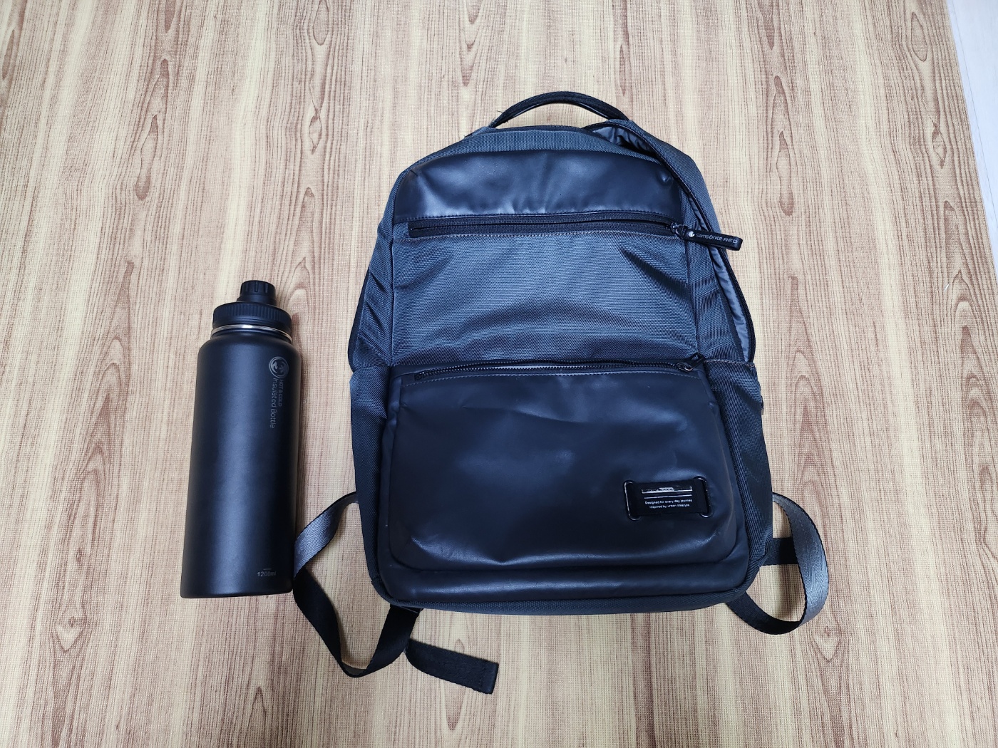 실제로 제가 평소에 들고 다니는 백팩에 넣어봤어요. 크기가 커 보이긴 해도 슬림하게 빠져 있어서 노트북 수납칸 옆에 쏙 들어갑니다. 무게중심이 아래쪽에 있어서 흔들림도 적고, 이동 시 안정감 있었어요.