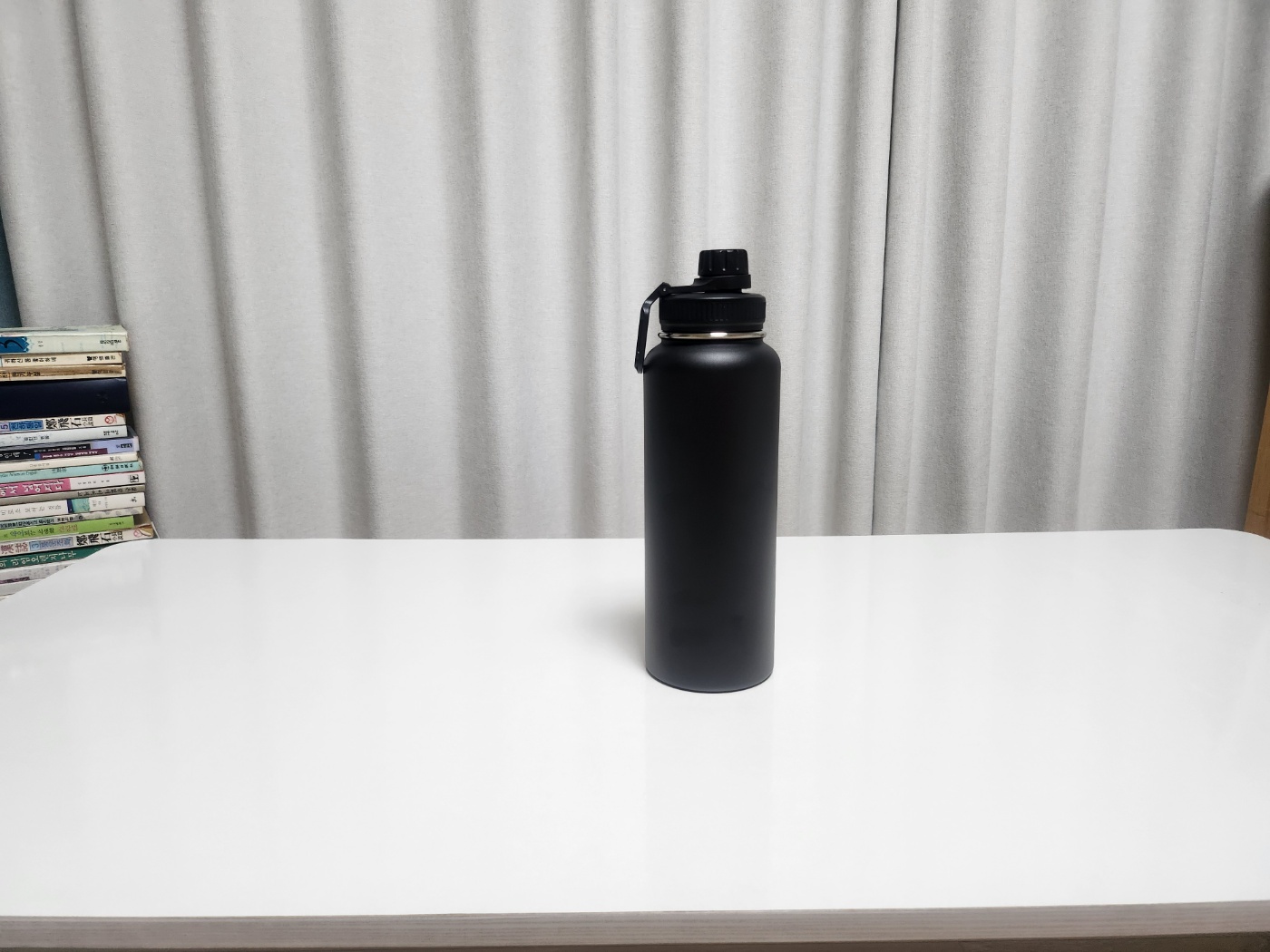 박스에서 꺼내자마자, 디자인이 꽤 마음에 들더라고요. 무광 블랙 컬러에 둥글둥글한 곡선, 그리고 불필요한 프린팅 없이 딱 필요한 정보만 있는 외형이 딱 제 취향. 1200ml의 대용량인데도 세련되고 날렵한 실루엣이라 들고 다니기 민망하지 않아요.