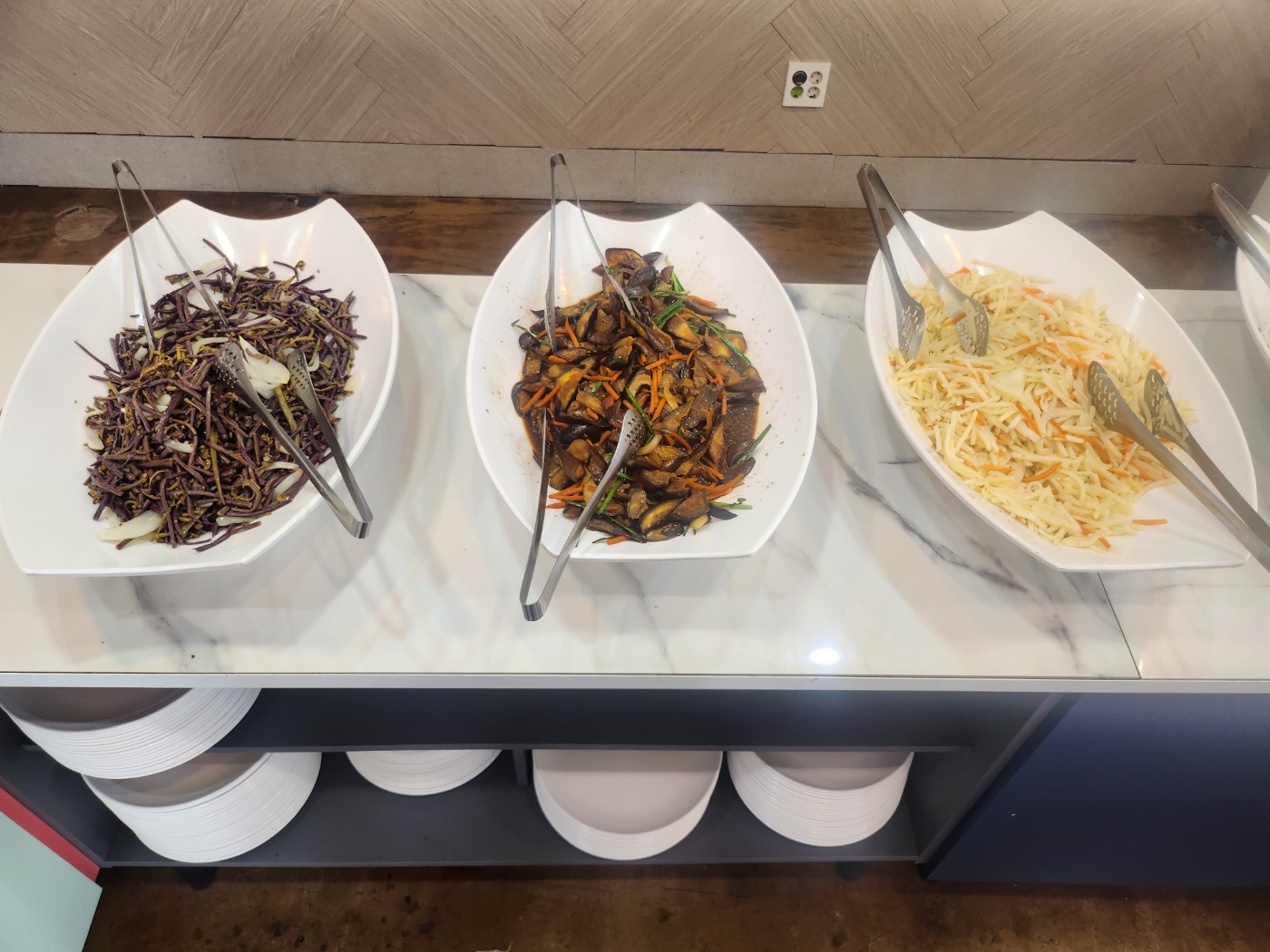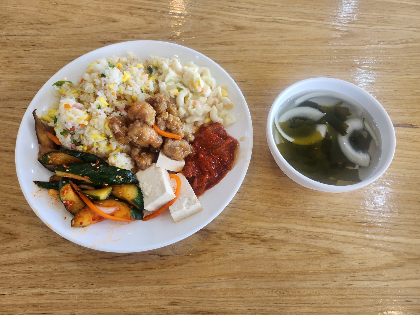 이번에도 한 접시 가득 담아봤습니다! 😋 반찬을 하나하나 골라서 담다 보니 어느새 접시가 꽉 찼는데요 ㅋㅋ;