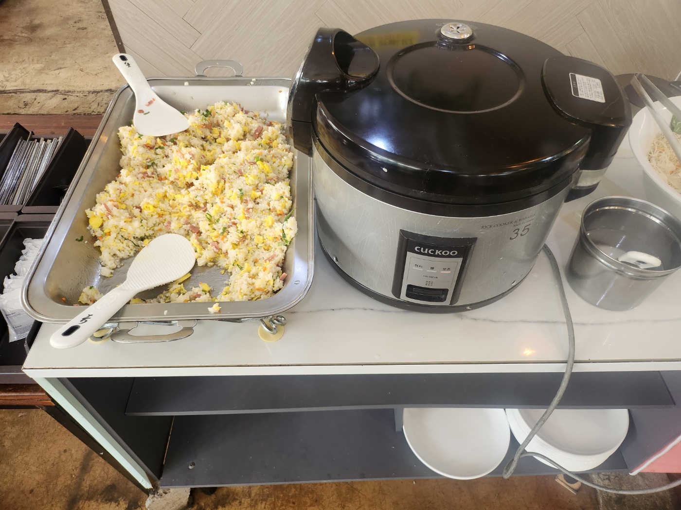 특이했던 게 돌솥밥도 제공이 되더라고요! 라면이랑 계란프라이해 먹을 수 있는 곳까지 있었습니다. 정말 종류가 많아서 선택 장애 오게 만드는 그런 뷔페 스타일이었던 거 같습니다~ 😅 ㅎㅎ