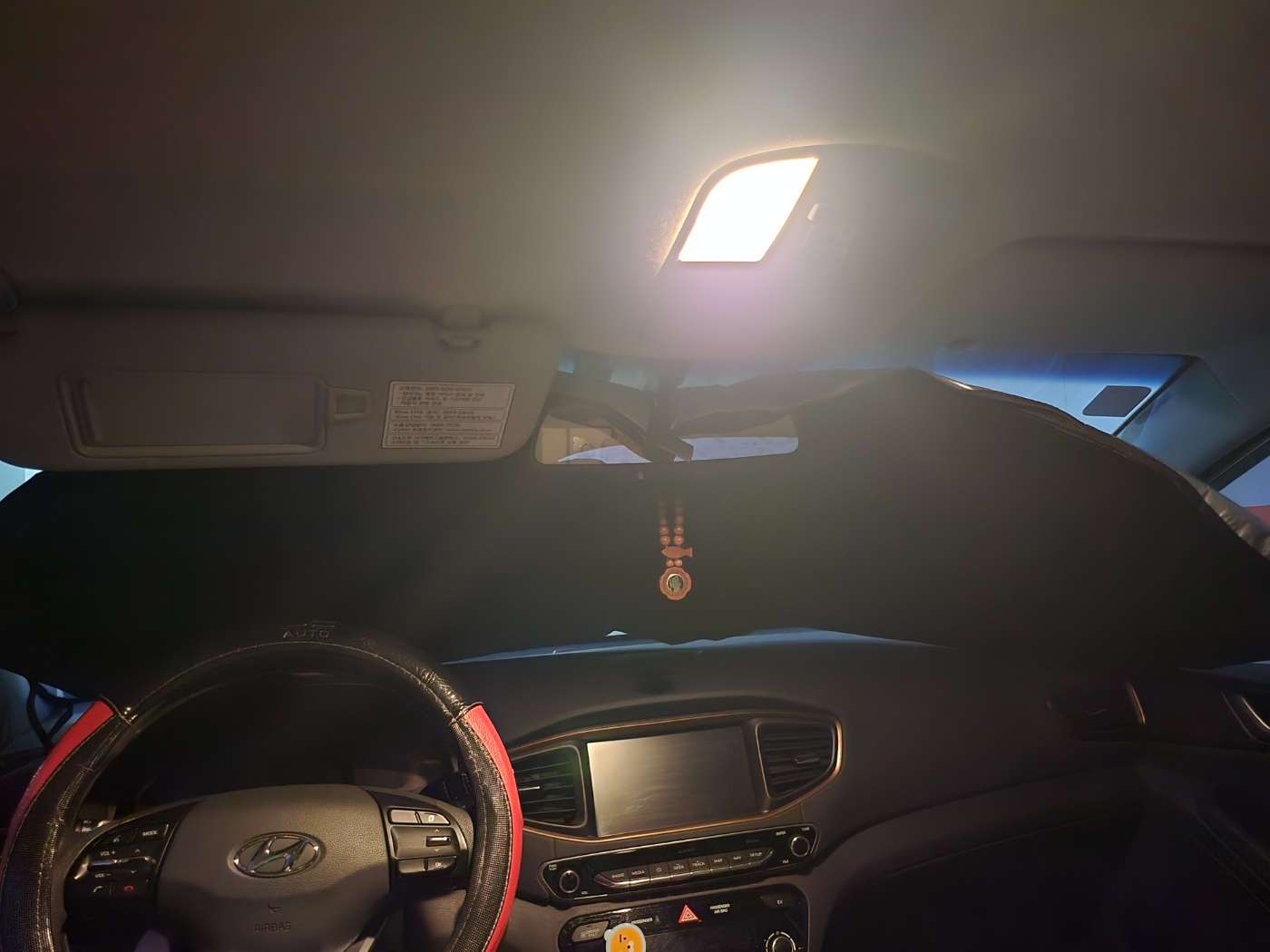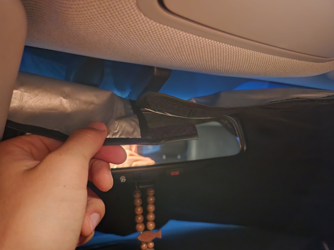 차량에 설치할 땐 가운데 스트랩을 룸미러에 먼저 고정한 뒤, 양쪽을 펴서 선바이저로 눌러주고, 선바이저로 눌린 상태에서 아마 제품을 만져보시면 아실 텐데 테두리에 두껍고 탄탄한 와이어? 가 있는 거 같더라고요, 그래서 차량 앞유리 부분 모서리(테두리) 쪽에 꾹꾹 눌러서 잘 맞춰주시면 알아서 잘 고정이 됩니다~ 👍